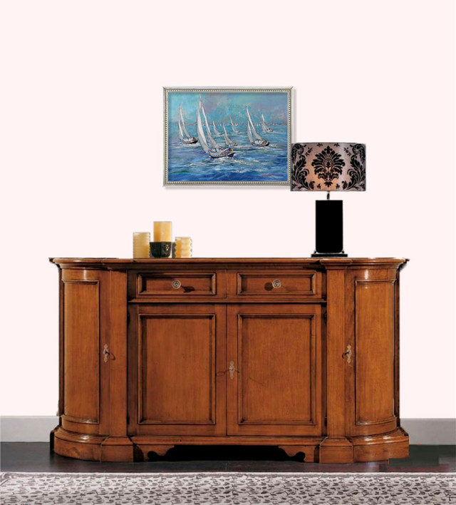 Рекомендується для розміщення в невеликих кімнатах, прихожих, в кухнях - столових будь-яких розмірів, на будь-яких житлових кухнях. Подивіться, як картина "Регата", наприклад, виглядає в такому кухонному інтер'єрі.